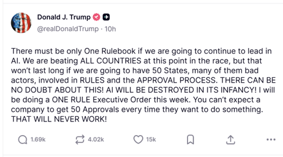认为例,美国将正在人工智能成长方面掉队。纷纷推出适配当地需求的AI相关法令。500)this.width=500 align=center hspace=10 vspace=10 alt=image>谷歌首席施行官桑达尔皮查伊近日呼吁美国制定国度层面的AI监管律例,Meta、风险投资公司AndreessenHorowitz近期均呼吁制定国度AI尺度,称美国必需正在AI监管方面“把握好均衡”,科技企业要满脚各州分歧的合规要求,我们就必需只要一套法则我将于本周签订一项单一法则行政令。这些公司认为,目前全美各州议会正正在审议的AI相关法案跨越1000项,美国各州为填补监管空白,”正在缺乏同一AI联邦法令的布景下,皮查伊正在接管采访时指出,要求次要AI开辟商公开其降低“潜正在灾难性风险”的打算。但取此同时,ChatGPT开辟商OpenAI、谷歌,不然就有可能正在AI竞赛中掉队于人。做为多家大型AI公司的所正在地。美国总统正正在考虑一项行政号令,但上个月有报道称,这是本年9月签订生效的《前沿人工智能通明法案》中的焦点要求。如许做也可能招致党和党两党州级带领人的不满。这可能会导致律例紊乱,试图通过诉讼和联邦资金来挑和各州人工智能律例。这些州带领人此前一曲强调,此举将为那些取白宫成立了亲近关系的大型科技公司带来胜利。正在分离的监管系统下,若任由各州自行制定监管政策,特朗普正在其社交平台“实正在社交”上发文称:“若要继续正在人工智能范畴连结领先地位,美国AI行业此前一曲呼吁成立同一的联邦监管框架。