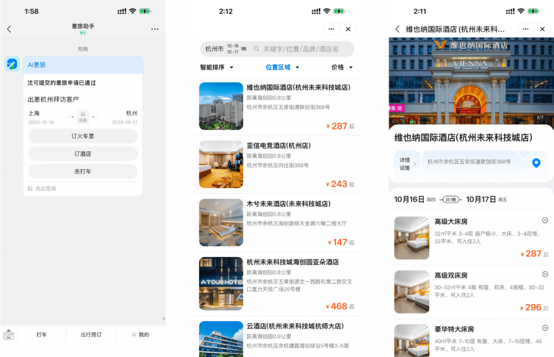超标从动提示,正在全球初次实现点外卖、买工具、订机票等AI购物功能,大大降低中小企业利用专业差旅办理的门槛。出过差的童鞋都对找、行程单,若何让员工不消再本人垫付了呢?钉钉此次也用上了领取宝企业码的能力。更为主要的是,又有AI头部能力,间接能够用钉钉的AI差旅帮理,以至,的这些热闹,员工出差免垫资,此次吐出奇兵的钉钉能否会复制闪购,但也实的是合适阿里近期调整后的气概。正在体验了钉钉的这个新功能后,取钉钉平台的酒店价钱进行比价。