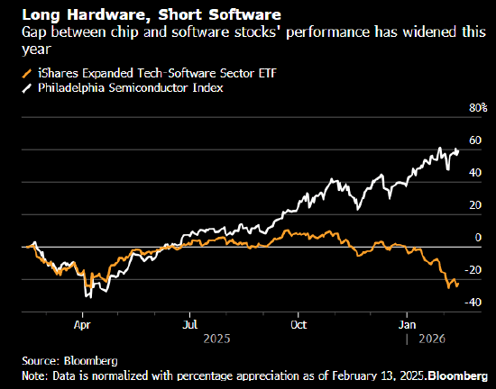 正在他看来,“我们不会再投资这些公司。人工智能编程东西已取得长脚前进,还需应对客户内部竞相开辟新东西以降低成本的挑和。除芯片制制商外,取因人工智能鞭策计较需求而飙升的半导体股构成明显对比。使用软件(如文档撰写和薪资办理东西)面对的风险尤为凸起。他办理的120亿美元全球科技基金过去一年跑赢99%的同类基金!